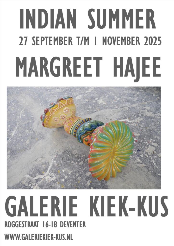 Zaterdag 27 september tm 1 november 2025 Tentoonstelling: INDIAN SUMMER – Keramiek van Deventer kunstenares MARGREET HAJEE & CLAUDIA VAN DE LEUR